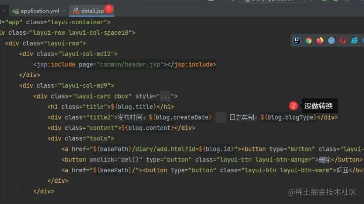 这样返回就会有blogTypeName,detail.jsp也要更新一下字段