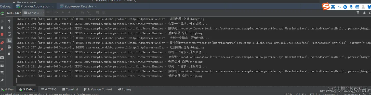 重写启动服务后,观察调用结果: