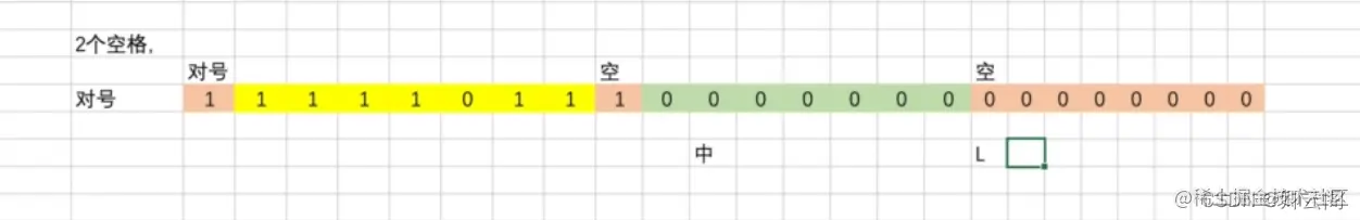 假如我们要打印两个空格⼀个对勾 写作⼆进制就应该是 0011111011**, 但是问题来了,我们怎** 么知道从哪⼉到哪⼉是⼀个字符呢?