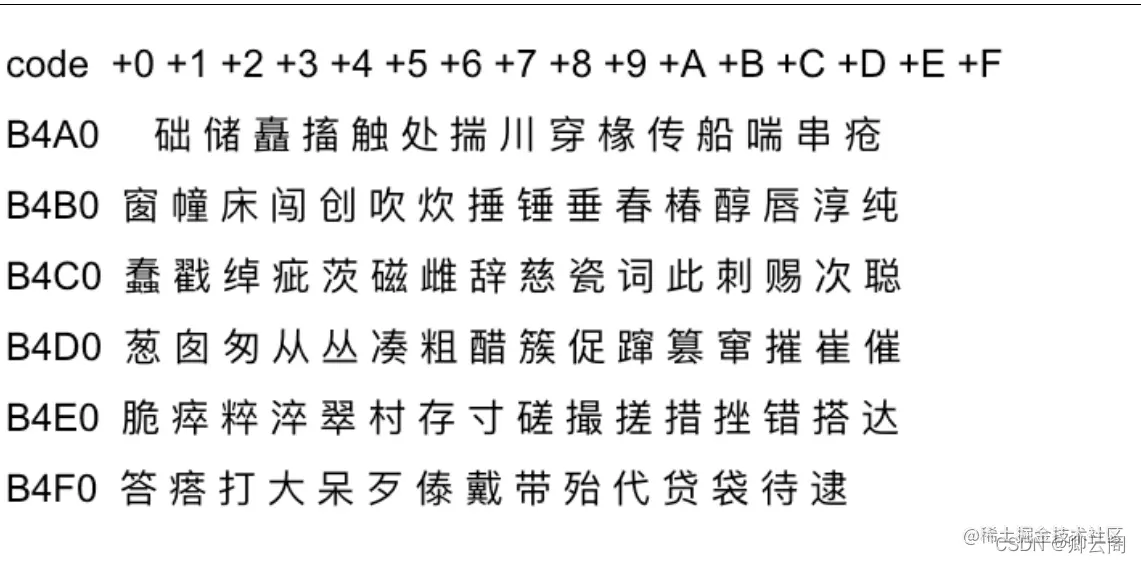 这个表格⽐较⼤,像上⾯的⼀块块的⽂字区域有72个,这导致通过⼀个字节是没办法表示⼀个汉字的 (因为⼀个字节最多允许256个字符变种,你现在6千多个,只能2个字节啦,2**16=65535个变种)。 有了gb2312,我们就能愉快的写中⽂啦。