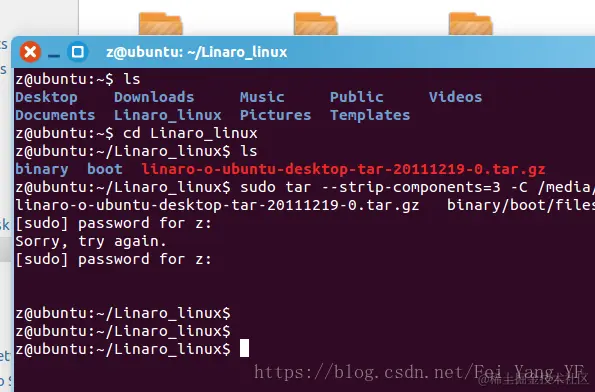 安装VMWARE:用这个打开linux虚拟机,运行要密码,解压也要密码,解压字符(解压前输入)sudo tar --strip-components=3 -C /media/z/rootfs -xzpf linaro-o-ubuntu-desktop-tar-20111219-0.tar.gz binary/boot/filesystem.dir