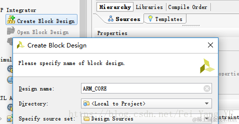 先创建ARM核/IP核,此处理器在逻辑上当作一个IP