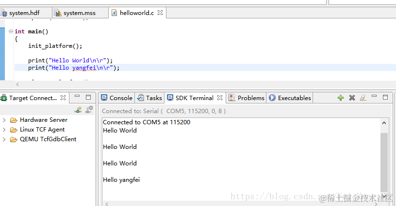 接着打开SDK软件,因为是跨平台的所以比较缓慢,里面的C语言和tcl部分都是初始化处理器,C语言是通过写寄存器完成,tcl脚本( 使用一种特定的描述性语言,依据一定的格式编写的可执行文件,又称作宏或批处理文件。脚本通常可以由应用程序临时调用并执行)是下载到处理器的时候起作用,通过下载线下载的初始化处理器(PS)的运行环境 ,system.xml是里面用到的地址,用到的外设已经它的起始地址和结束地址