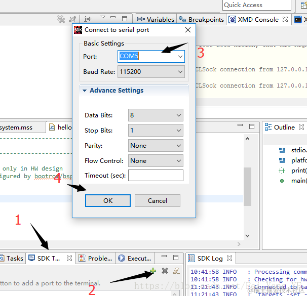 在右上角的XMD Console页面下可以查看进程:建立下载连接-下载代码-运行代码地址(先下载到DDR里面)注:DDR 双倍速率同步动态随机存储器