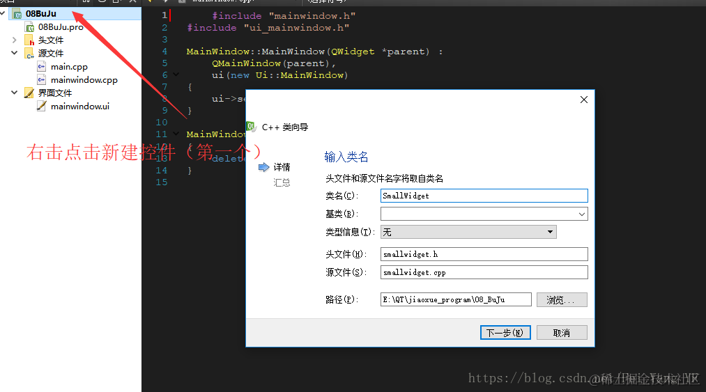 添加后再点击提升,再编译就可以。全局包含的好处是再放一个widget,点提升为会自动有SmallWidget选项,也有取消提升