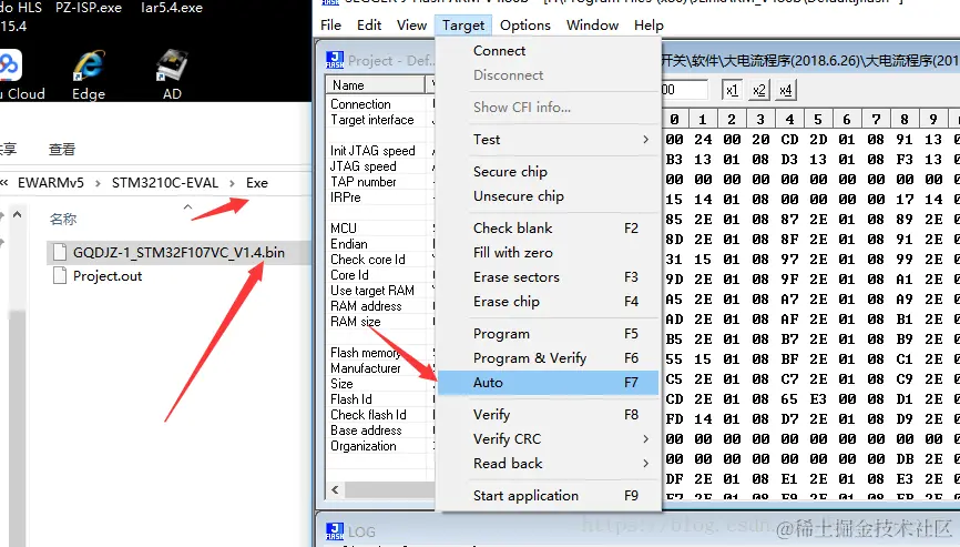 把IAR生成的.bin文件拖到框里面,