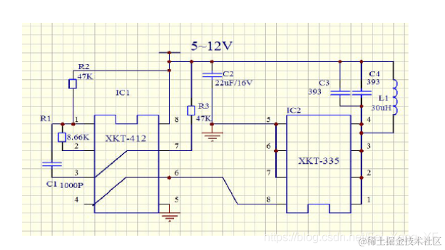 采用XKT-412+XKT335方案的话,下图为网络截图,R1取8.66K总是炸,换成20k可以了,可能也和电池供电有关