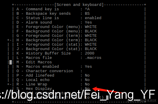 单击S更改Hex Display为Yes,然后回车确认,然后ESC退出配置