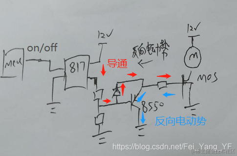 一个直流电机驱动的小电路 Sky_Lannister 2022-05-02 215 阅读1分钟 正常时光耦导通后,电压如红色箭头,打开mos,因为二极管存在,B极始终大于E极0.7V,8550不会导通;光耦关闭后,电压没了,mos断开,电机停;电机被外力推动时,电流如蓝色箭头,通过三极管泄放到地,有二极管而不会传到817