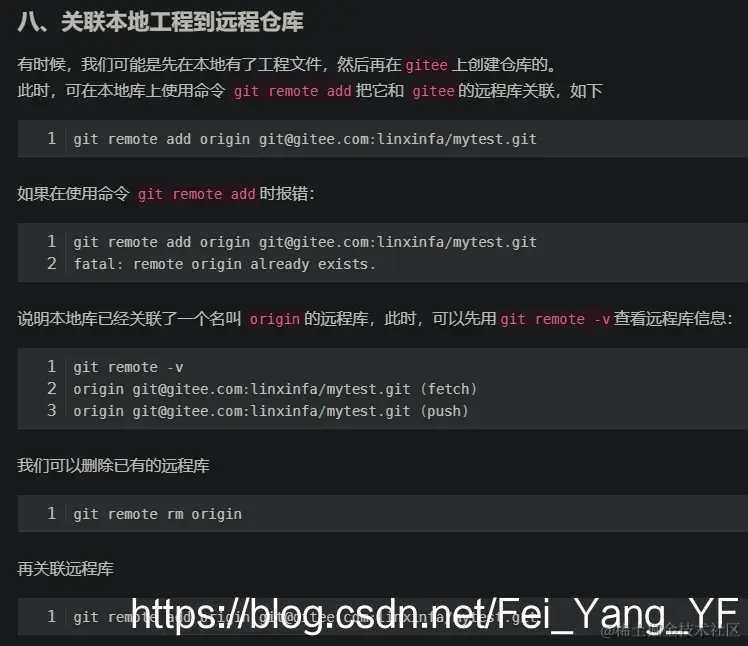 例:git remote add origin git@gitee.com:linxinfa/mytest.git