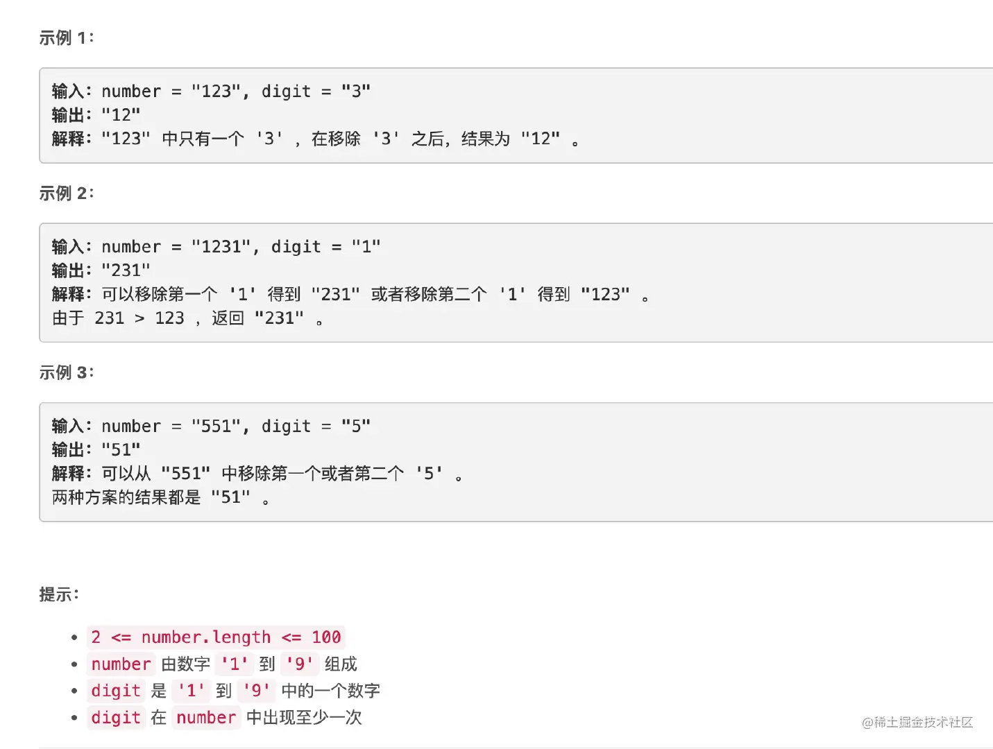题意非常直观,删掉一个字符,使得剩下的数字最大。又看了一眼范围,最大的长度是100,虽然超过了所有整数类型,但并不是非常大,Python可以支持任意长度的整数,100位是小case。