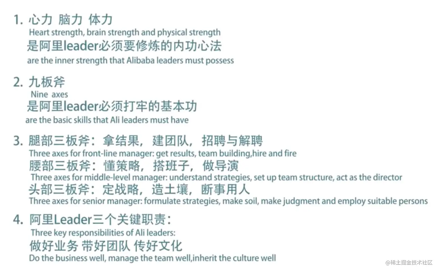 下面是阿里对于一个 Team Leader 在管理上的要求。
