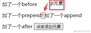 $('p').prepend('加了一个prepend'); //prepend 在元素前面插入