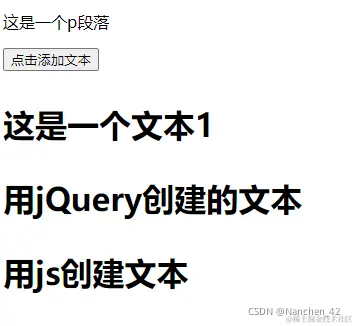 var txt2 = $('<p>用jQuery创建的文本</p>');