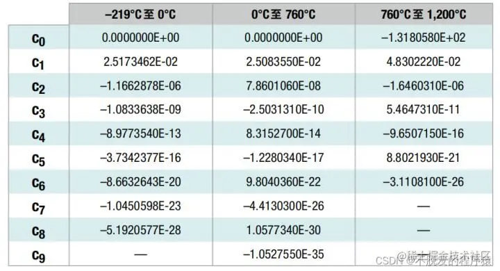 本篇博文主要给各位分享J型热电偶和K型热电偶阻值温度换算公式。
