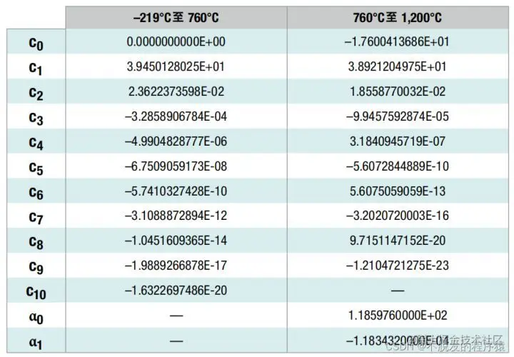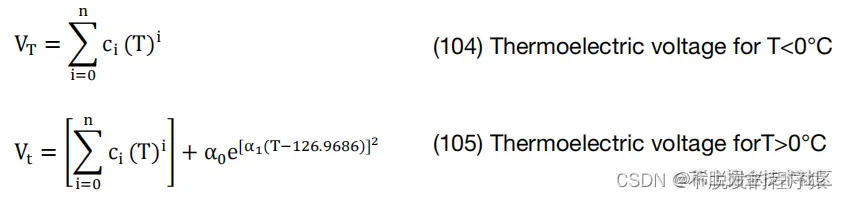 将温度转换为电压的K型热电偶(ITS-90标准),公式如下所示: