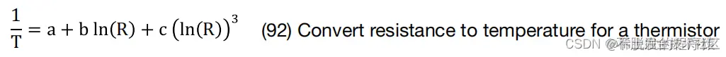 热敏电阻温度转电阻(Steinhart-Hart方程式),公式如下所示: