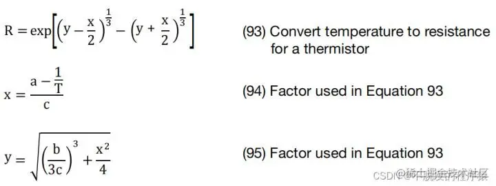 - x, y =温度到电阻换算方程式中用到的Steinhart-Hart因子