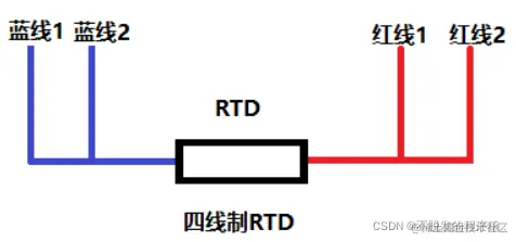 四线制RTD是在三线制的基础上又增加了一条线,即电阻的两端各有两条线,如下图所示: