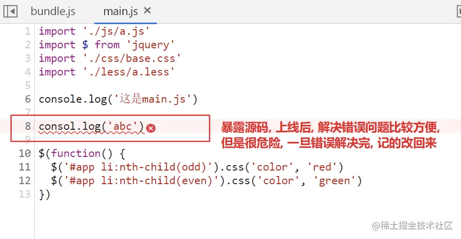 - 重新启动开发服务器/打包, 观察是否有错误代码打包前的位置信息了