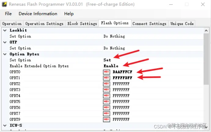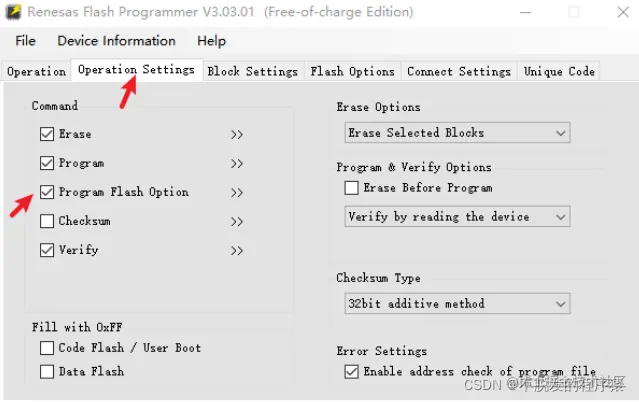 Flash Options,设置如下所示: