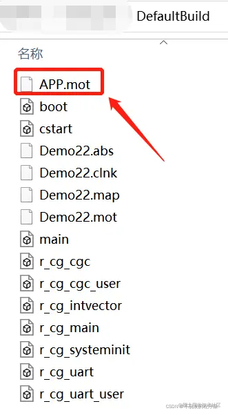 保存配置,编译工程, 可见工程文件DefaultBuild中出现XXX.mot文件,如下图所示: