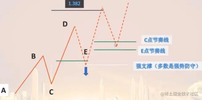 - 第二个:过高点 D 但是不打 1.382 的位置