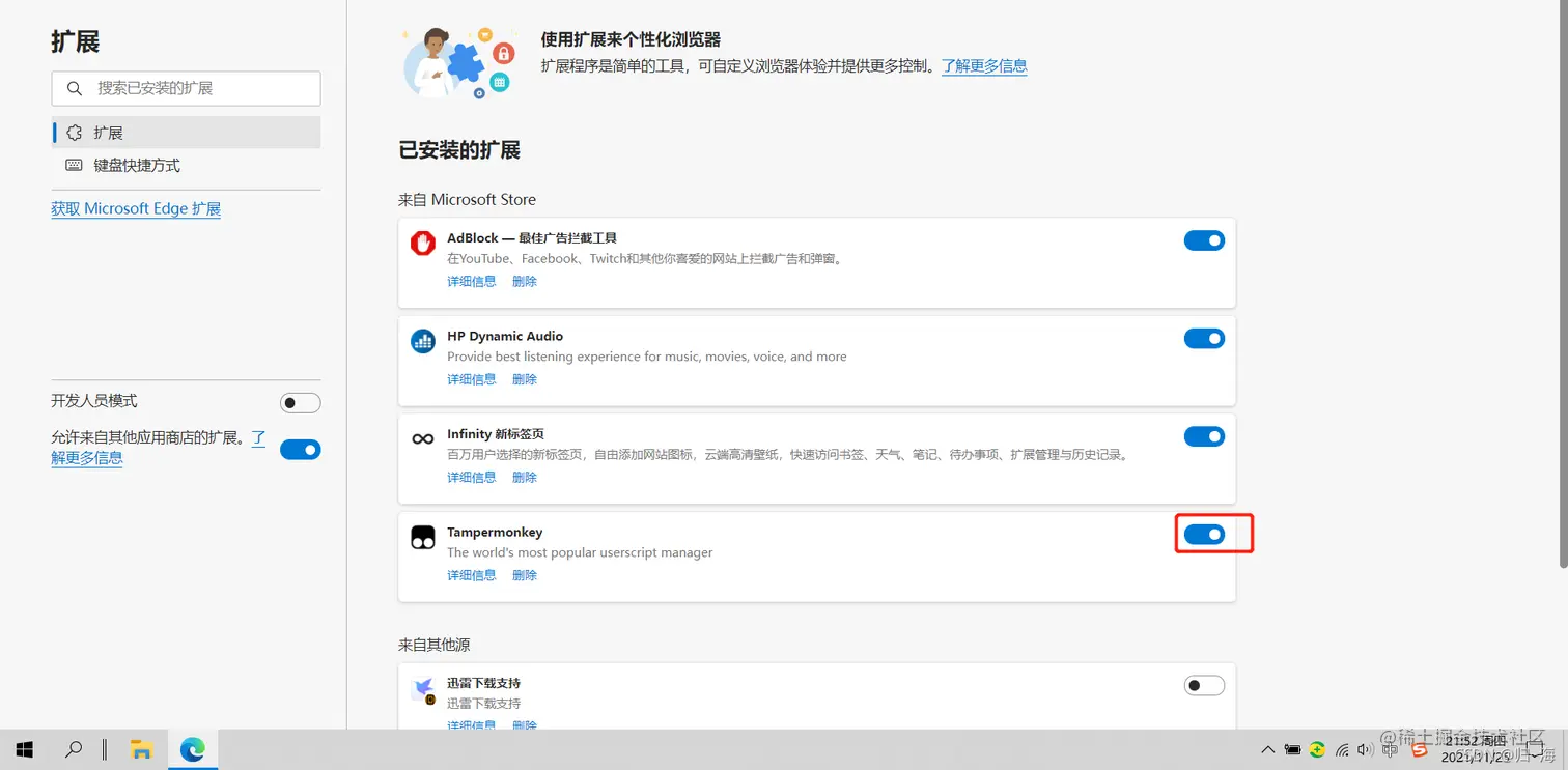 安装完之后我们要打开拓展,把油猴启动了