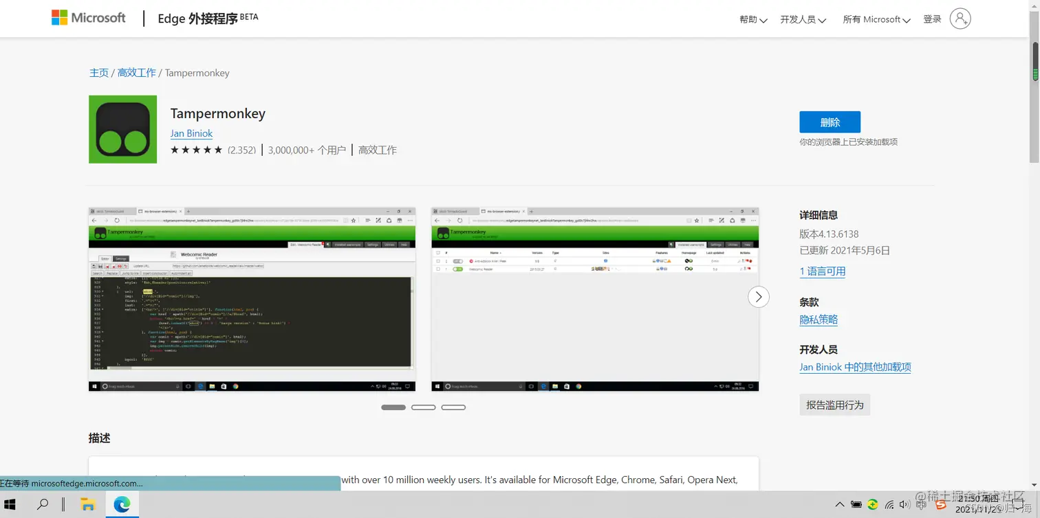 想使用插件首先要安装插件,我这里以Edge浏览器举例。