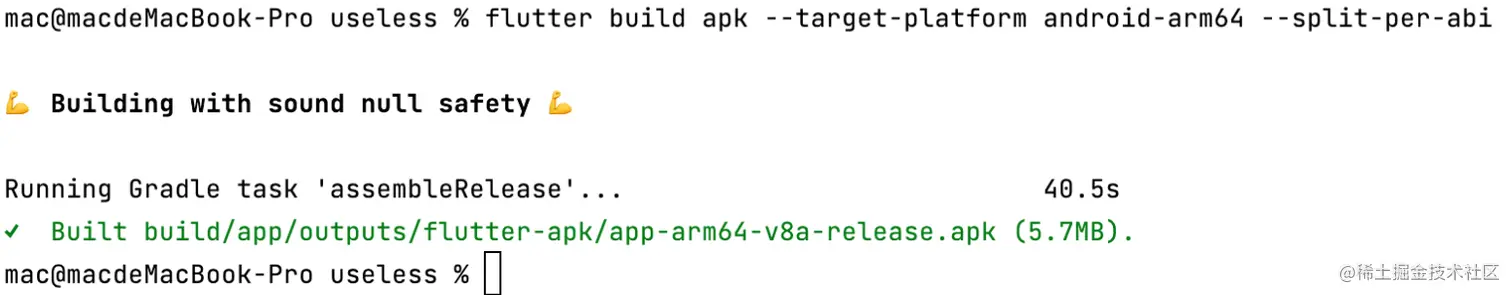 flutter build apk --target-platform android-arm64 --split-per-abi