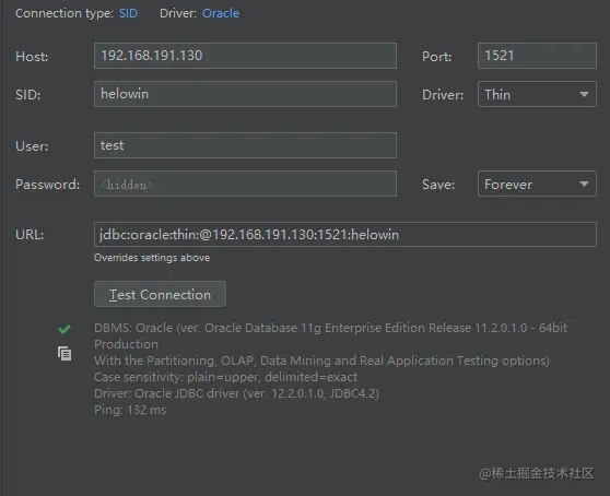 grant connect,resource,dba to test; - 修改密码永不过期(默认180天)
