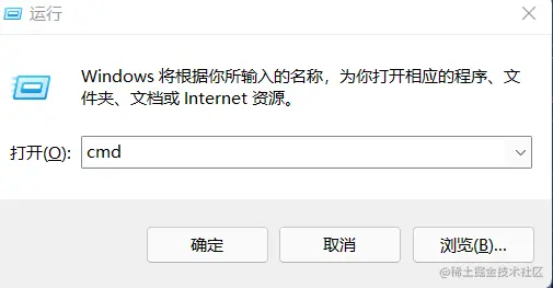 Win+R键,在文本框中输入cmd打开命令行窗口。 -