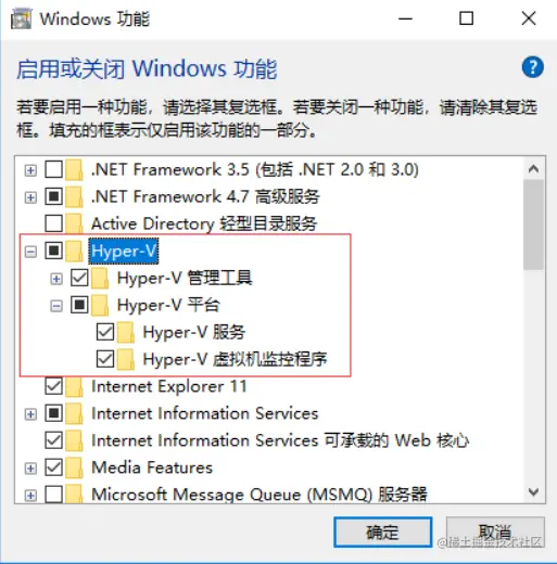Hyper-V 是微软开发的虚拟机,类似于 VMWare 或 VirtualBox。这是 Docker Desktop for Windows 所使用的虚拟机。