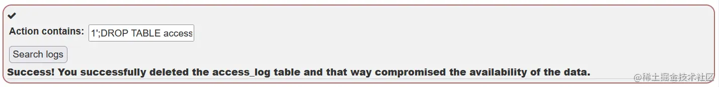 有许多不同的方法可以破坏可用性。如果一个账户被删除或其密码被更改,实际拥有者就不能再访问这个账户。攻击者也可以尝试删除数据库的部分内容,甚至删除整个数据库,以使数据无法访问。撤销管理员或其他用户的访问权限是破坏可用性的另一种方式;这将阻止这些用户访问数据库的特定部分,甚至整个数据库。 轮到你了!
