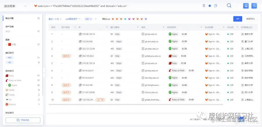 先从图标下手,限定edu域名:可以看到有17条资产