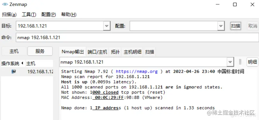 ### -v表示显示冗余(verbosity)信息,在扫描过程中显示扫描的细节,从而让用户了解当前的扫描状态。