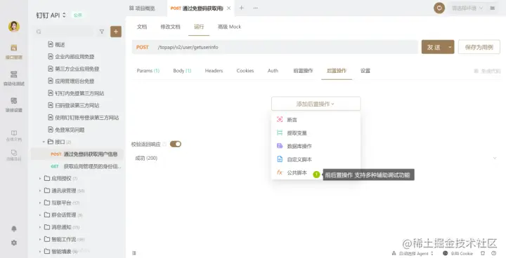 而且Apifox的接口和文档是一体的,修改文档和接口能实时同步更新到调用这个开放API的所有开发者,避免了项目接口升级或迭代需要很多的沟通和告知工作。