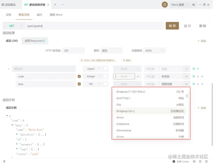 如果你的项目数据有特定的数据类型,可以自己自定义mock规则,在项目设置-mock设置中可通过通配符或正则表达式构造出你需要的数据来调试。