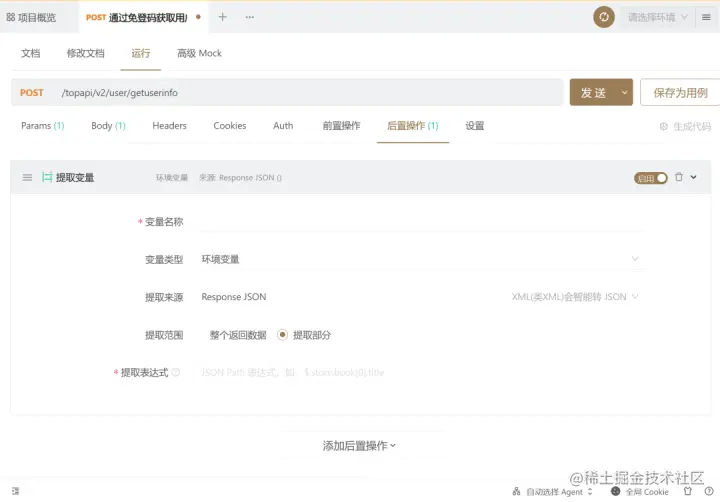 b.支持提取变量保存到项目全局变量中,能够实现接口之间的数据传递