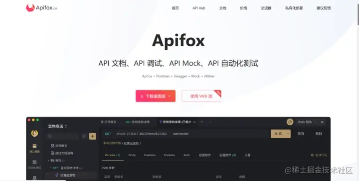 Apifox 支持API文档管理,API 调试,API Mock,API 自动化测试,是一个后端,前端,测试都能用的一站式接口管理平台,因此它官网上写的slogan就是 Apifox=Swagger+Postman+Mock+Jmeter。