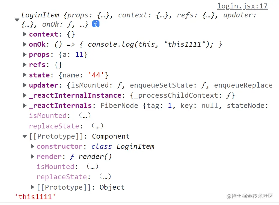 而在react中经过了处理,使得在类式组件中有一些地方的this得以指向当前的实例对象 ,如 constructor和render等生命周期钩子