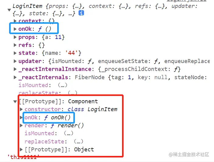 this.onOk = this.onOk.bind(this),构造器里面的this默认指向实例对象,实例对象通过原型链在类的原型上找着该函数,通过bind函数将其this指向改为实例对象,并返回一个新的函数,再将这个新的函数给实例,并取名为xxxx