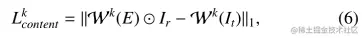 给定一个参考图片 和带有重叠区域的目标图片 ,网络的目标是对齐重叠区域。令 表示采用特征金字塔中第 k 层预测网格的空间变换操作,则对该层的内容对齐约束如下所示: