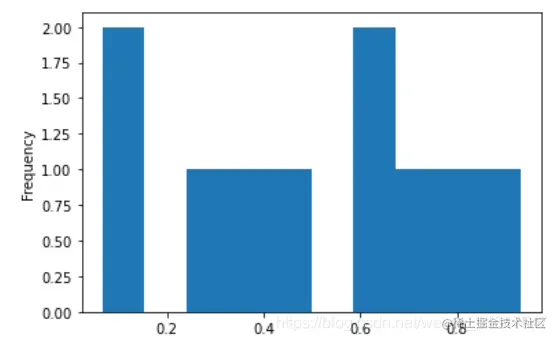 使用python绘出一个简单的直方图,可以观察到其中有两个组距是空的,添加空组距也是有必要的,空组距中没有值通常是很有价值的信息。尝试不同大小的组距也是非常有用的,如果组距过大,可能就会隐藏掉分布的一些重要特性;如果组距过小,那么结果就会过于颗粒化,失去查看整体图的能力。