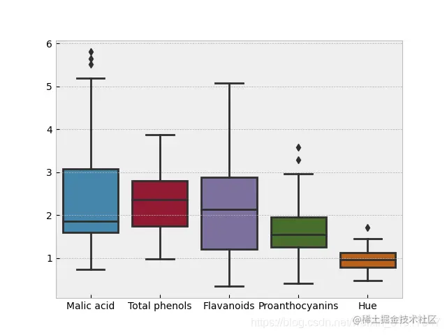 箱形图可以很直观的比较不同类别的(或不同特征的)数据分布。