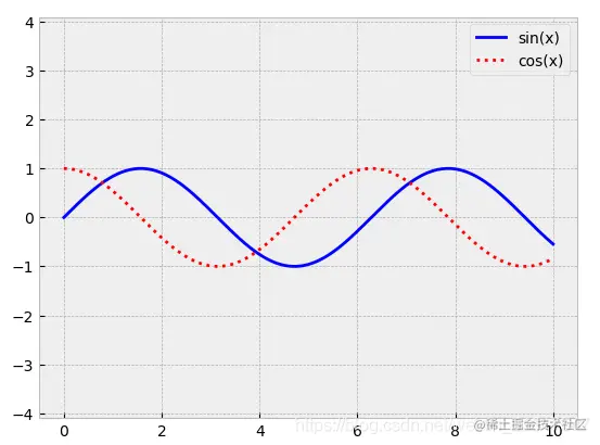 在Matplotlib中可以使用plt.style来选择一种绘图风格,例如选择经典风格(classic),可以使用plt.style.available来查看可以使用的库中自带的风格,还可以自定义自己想要的绘图风格,有关绘图风格的详细使用方法会在后续介绍。