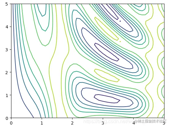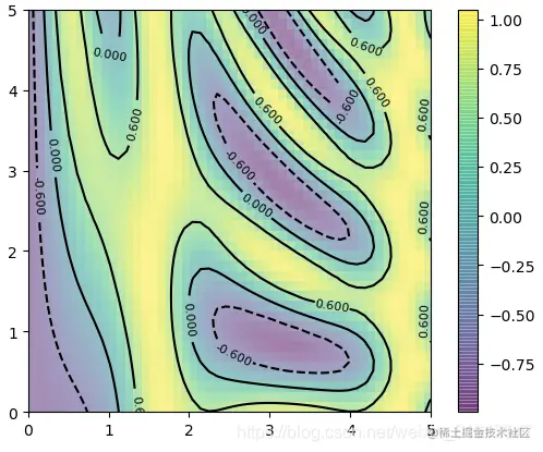 plt.clabel(contours,inline=True,fontsize=8) #在等高线图中加入label