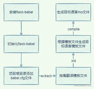 通过flask-babel的官方文档以及网络上的一些简单示例教程,flask-babel进行国际化的流程如下图所示