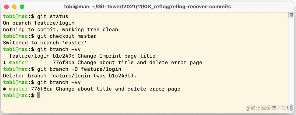 接下来看看另一个示例,用Reflog来恢复整个分支。