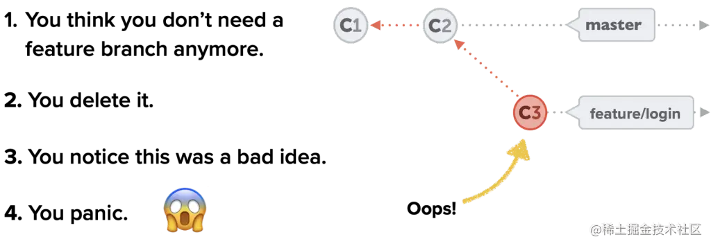 好吧,假设我们的客户或团队领导改变了主意,现在又需要feature/login分支(包括它的提交)了,怎么办?